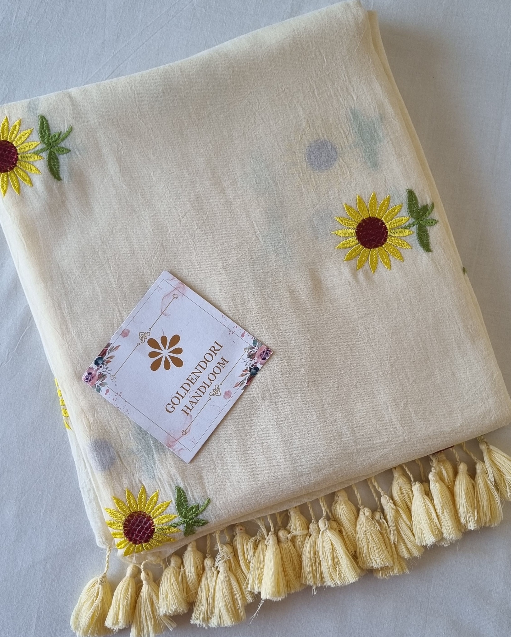 Surajmukhi Phool Off white Pure Mul Cotton Saree