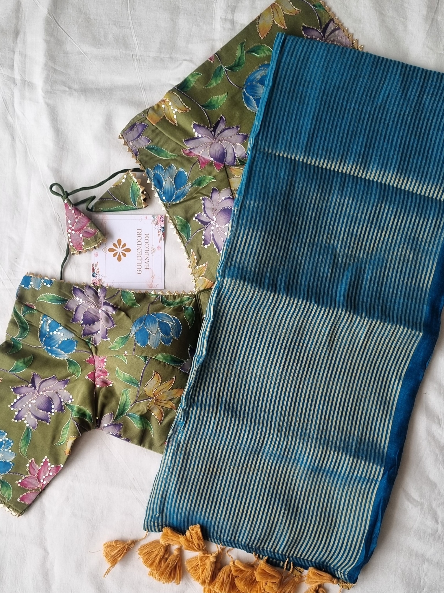 Sky Blue Saree Mehandi.Organza Blouse