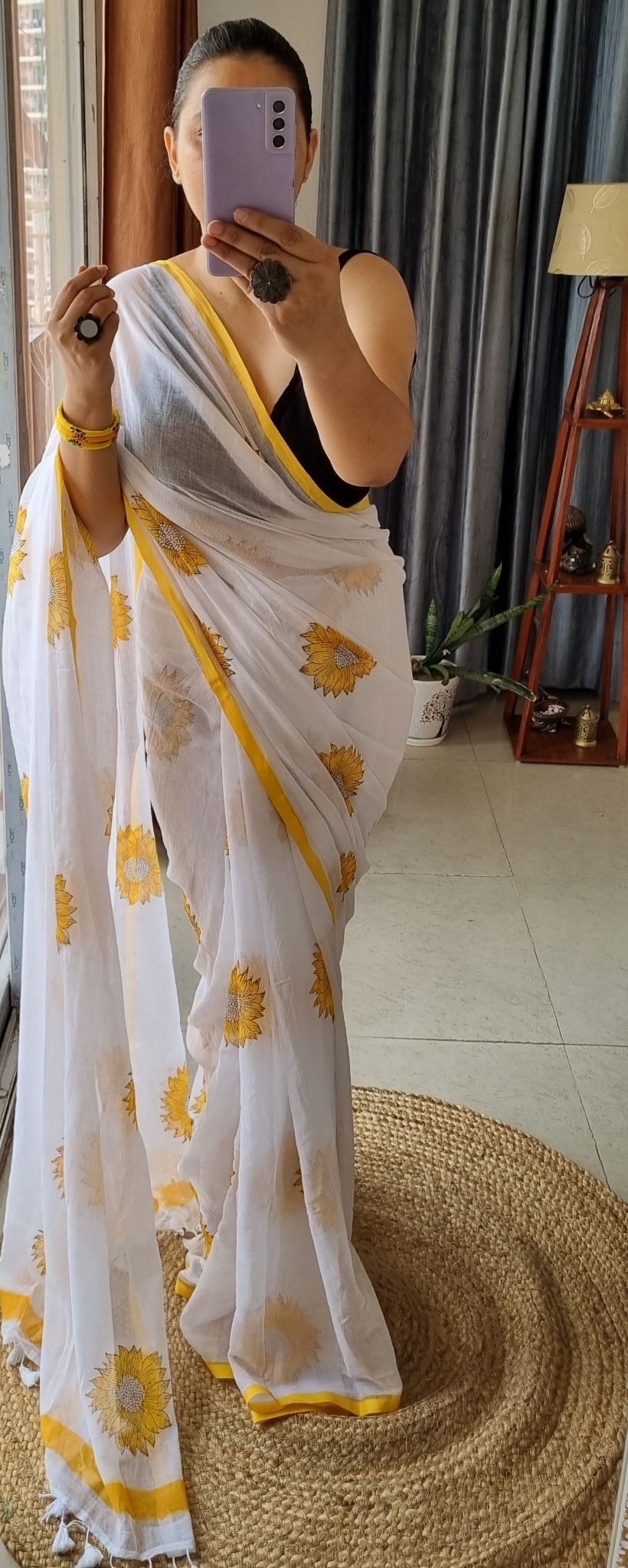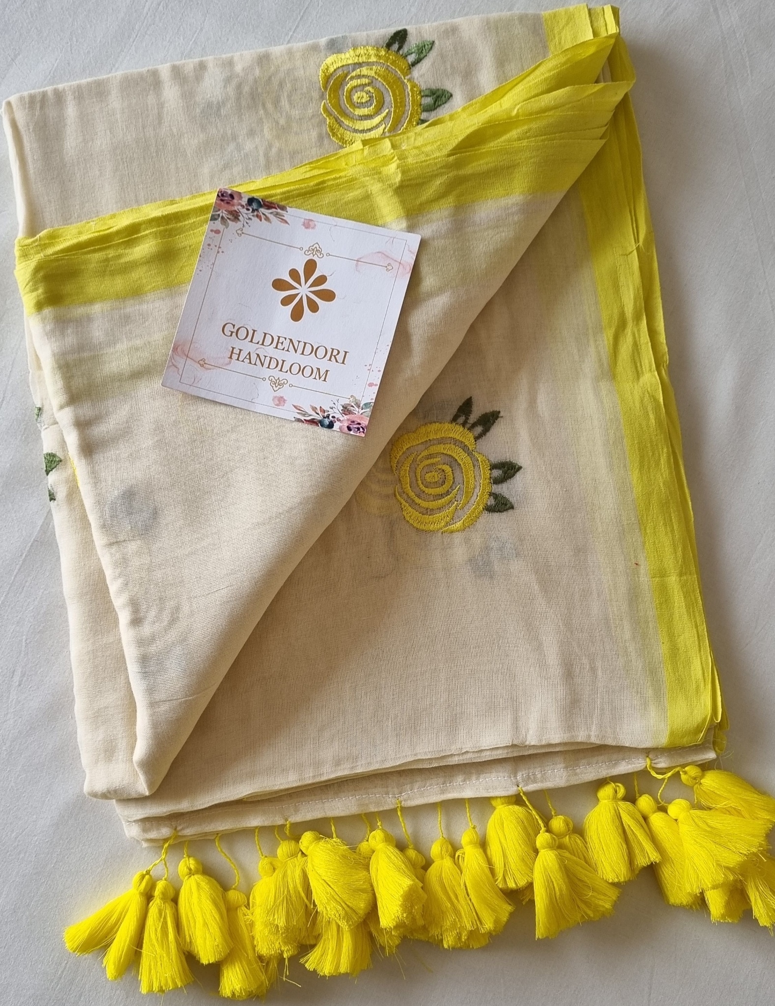 Yellow Daisy Hand Painted Pure Mul Cotton Saree