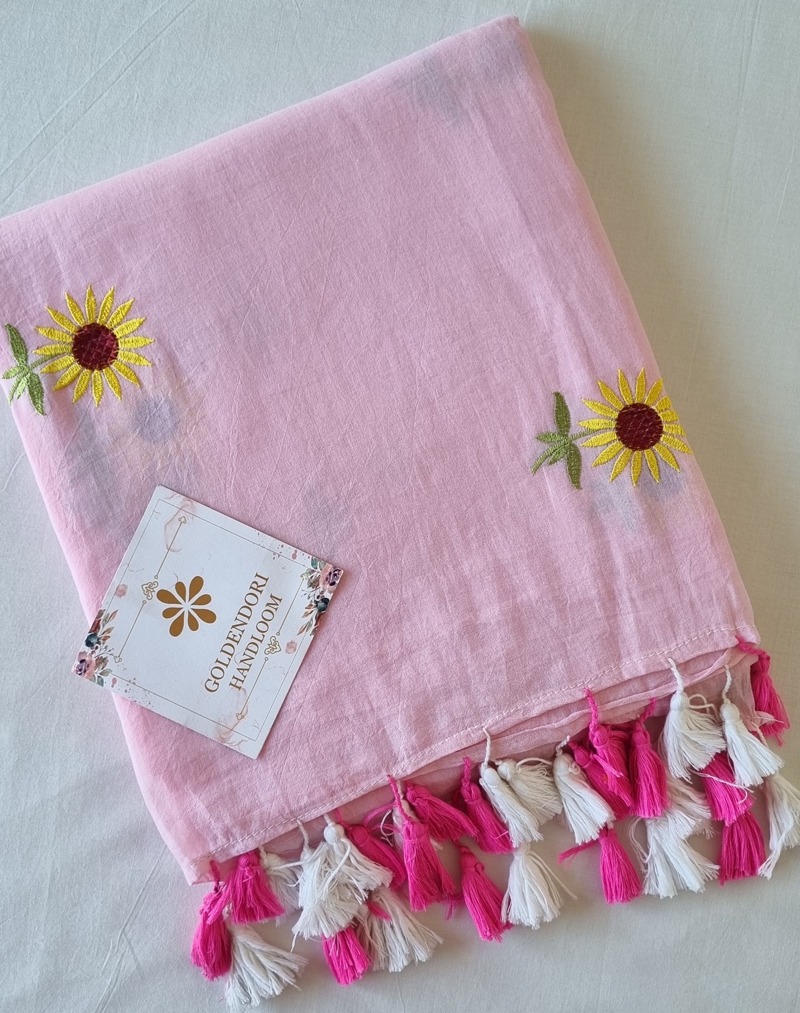 Baby Pink Jasmine embroided Pure Mul Cotton Saree