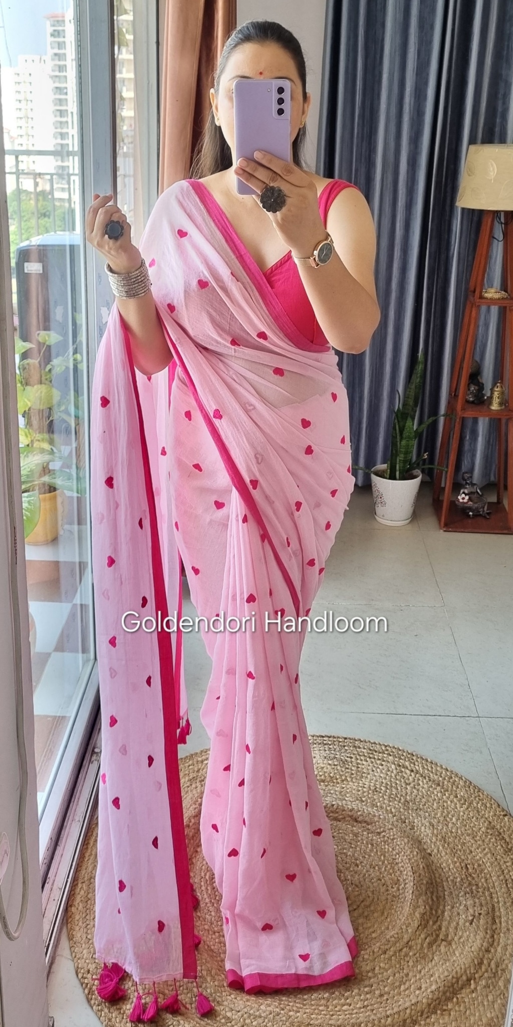 Queen Pink Heart Pure Mul Cotton Saree