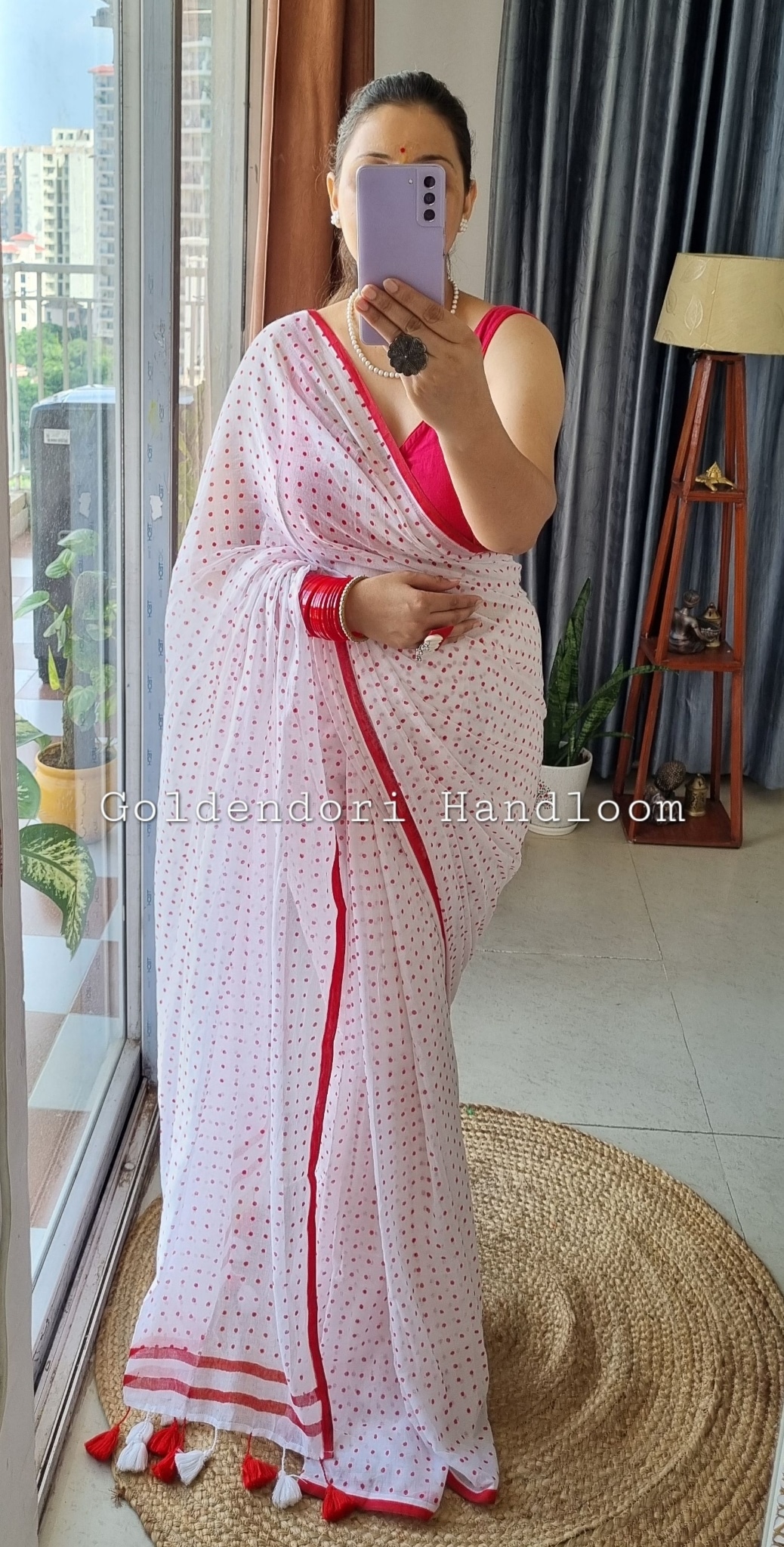White Red Mini Polka Dott Saree
