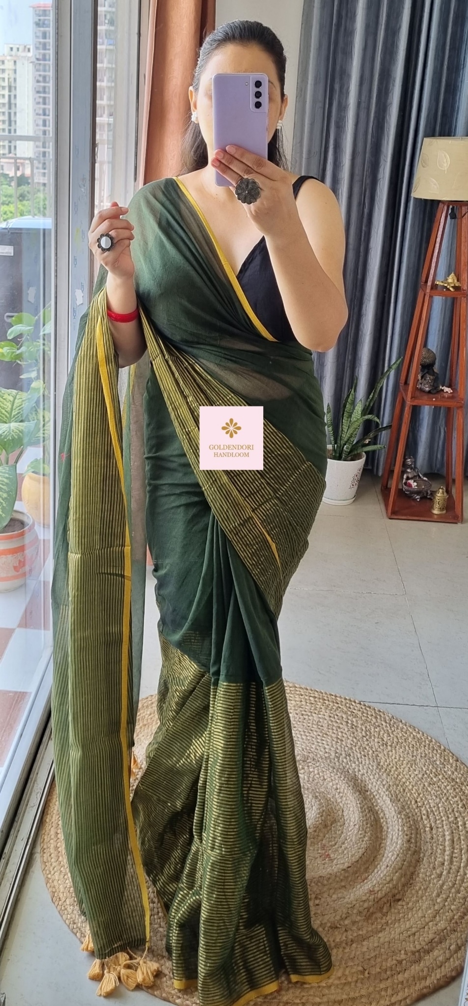 ☆ SITARA Bottle Green Pure Mul Cotton Saree☆